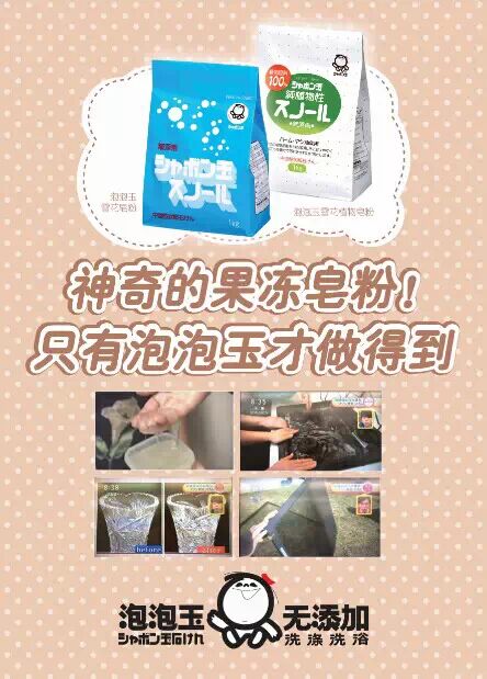 使用泡泡玉皂粉的您,是否了解它的另一个神奇妙用?简单的几个步骤,皂粉“变身”为QQ的果冻状,可爱的质地,让主妇们使用起来更加得心应手。衣物、厨具、纱窗、地砖......清洁就是如此简单!一起来体验吧!